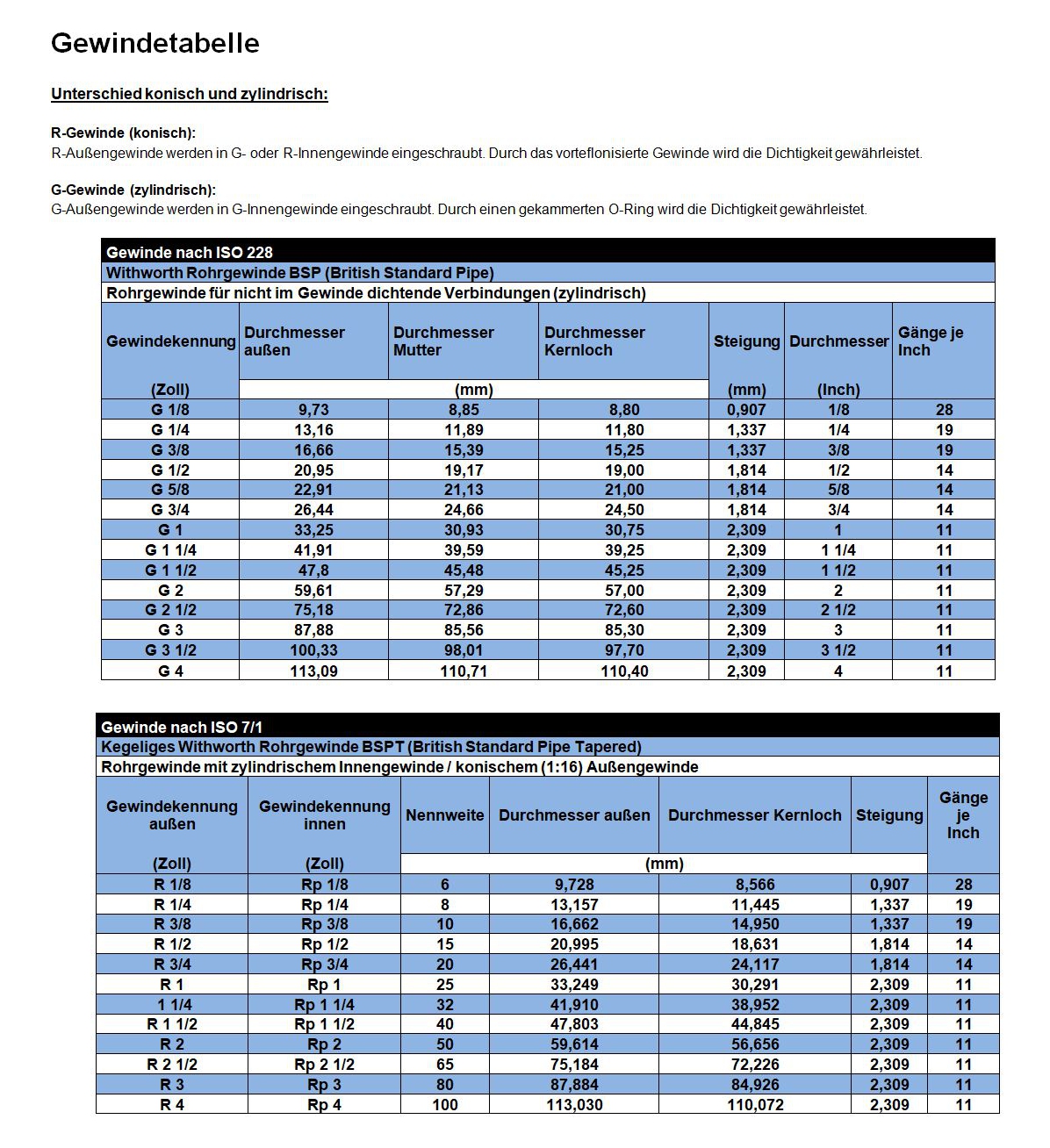 In dieser Übersicht finden Sie alle nützlichen Informationen zum Thema Gewindegrößen.